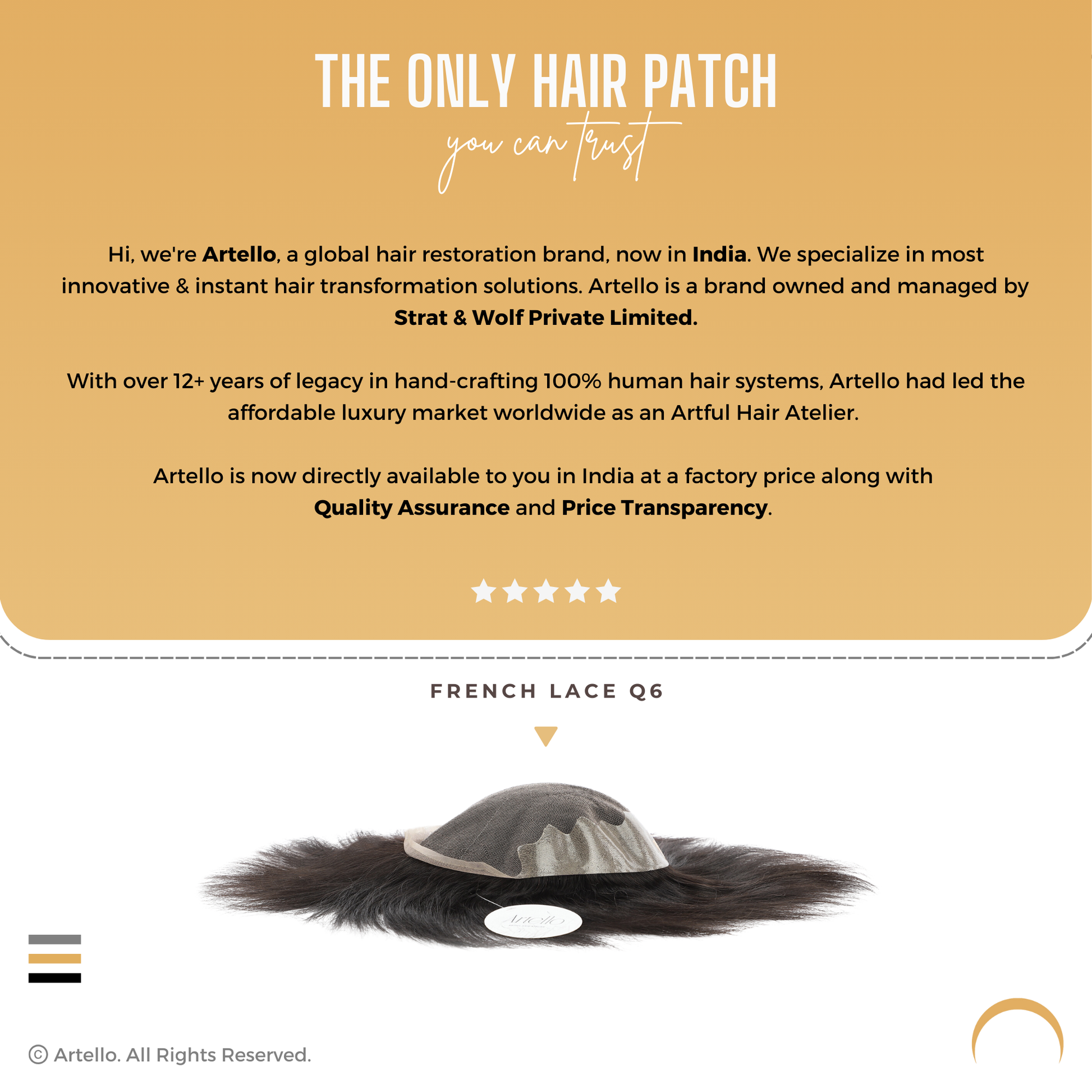 Our India warehouse stocks 40+ designs. For any product related assistance, return or replacement enquiries, or to schedule a free 10-minute consultation with an Artello Hair Expert, just click on the green icon at the bottom right of your screen to easily Call or WhatsApp us directly.